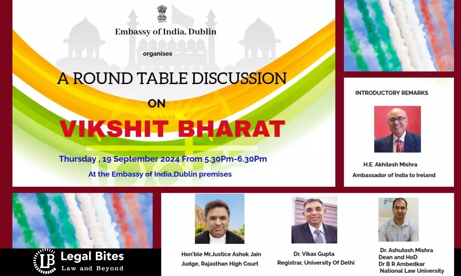 H.E. Akhilesh Mishra leads successful Vikshit Bharat discussion at Embassy of India, Dublin with top legal experts.