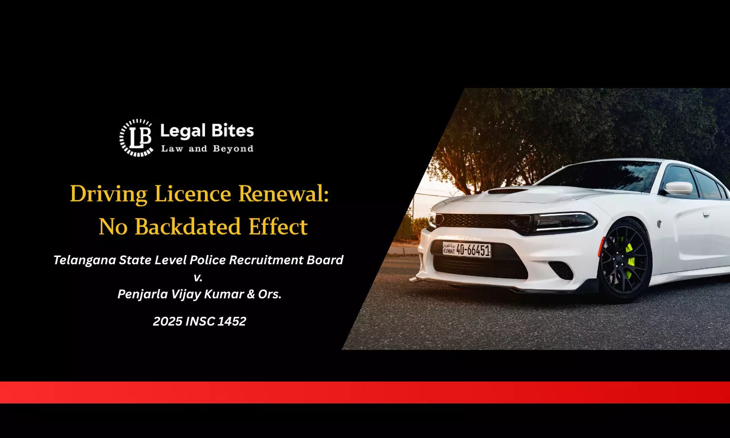 Clarity on the legal effect of delayed renewal of driving licences has long been elusive, often leading to conflicting outcomes in employment, insurance, and regulatory matters. In Telangana State Level Police Recruitment Board v. Penjarla Vijay Kumar & Ors., the Supreme Court of India put this ambiguity to rest by ruling that a driving licence renewed after expiry operates only prospectively from the date of renewal and not from the date of expiry.