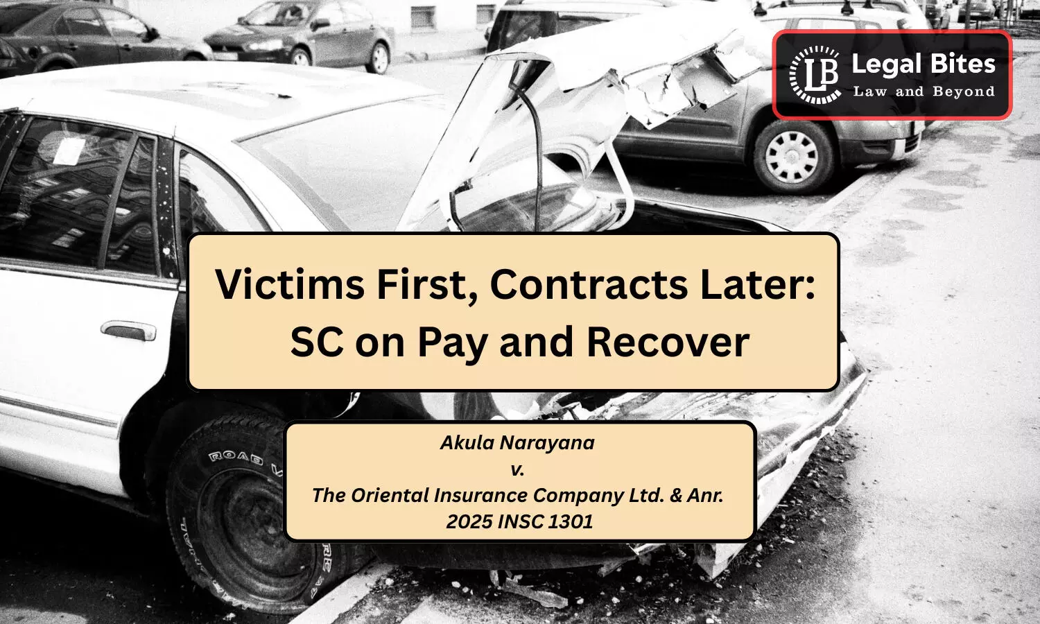 In a significant reaffirmation of the long-standing “pay and recover” doctrine, the Supreme Court of India in Akula Narayana v. The Oriental Insurance Company Ltd. & Anr. (2025 INSC 1301) once again underscored that insurers cannot completely evade liability toward victims of motor-vehicle accidents merely because of policy breaches by the vehicle owner. The Court directed the insurer to first satisfy the award passed by the Motor Accidents Tribunal (MACT) in favour of the claimant and only thereafter recover the amount from the owner of the offending vehicle.