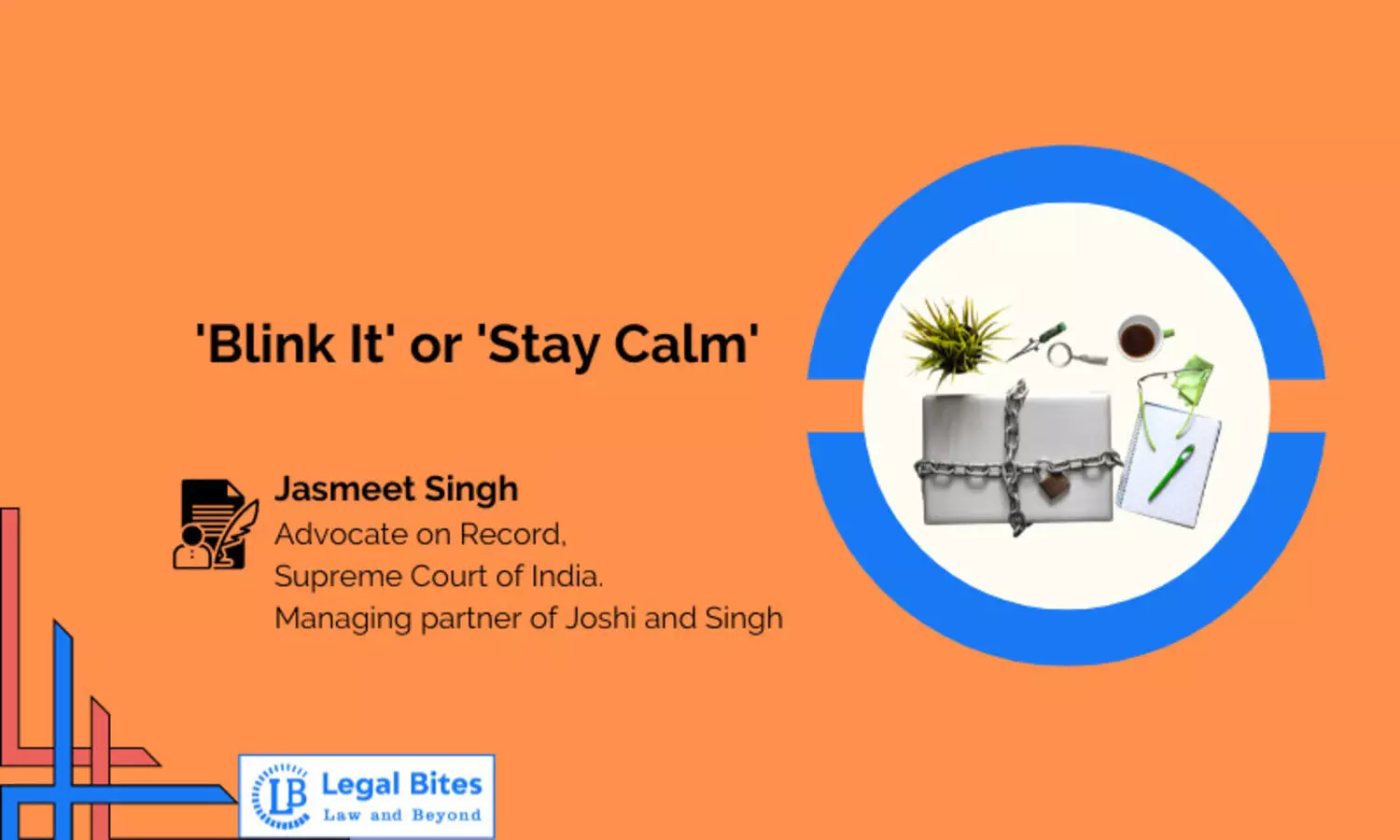 The Article 'Blink It' or 'Stay Calm' by Jasmeet Singh, Advocate on Record, Supreme Court of India managing partner of Joshi and Singh edited by Saif Ali Advocate and Associate at Chambers of Joshi and Singh has comprehensively dealt with the current issue of the ill effects of technology on the lives of people.;