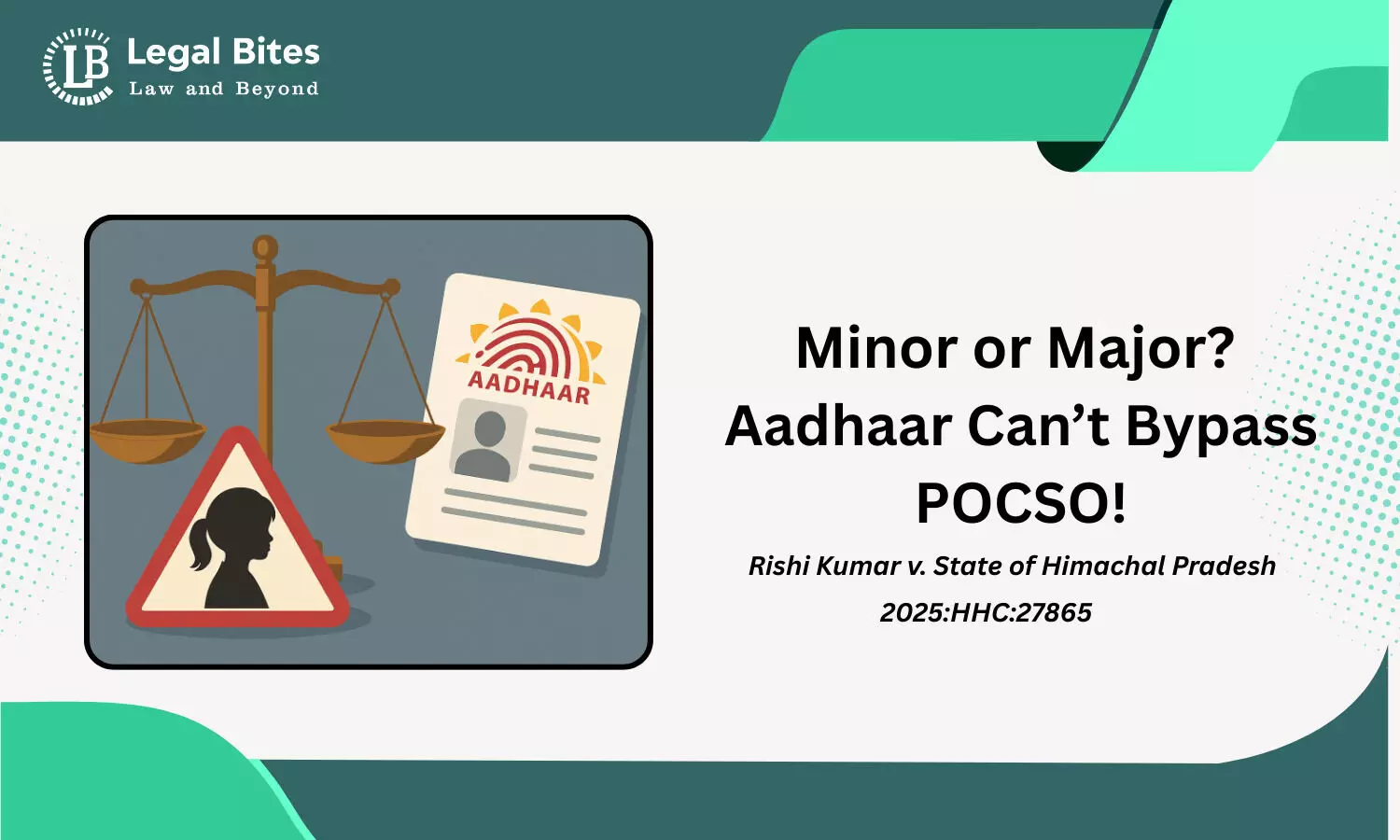 The Protection of Children from Sexual Offences Act, 2012 (POCSO Act) was enacted to protect children under the age of 18 from sexual assault, harassment, and exploitation. One of the recurring issues in POCSO trials is whether the age recorded in an Aadhaar card—sometimes showing that the victim is a major—can nullify the prosecution. The Himachal Pradesh High Court in Rishi Kumar v. State of Himachal Pradesh (2025:HHC:27865) clarified that Aadhaar cannot be treated as conclusive proof of age, and therefore, cannot be relied upon to defeat charges under POCSO.