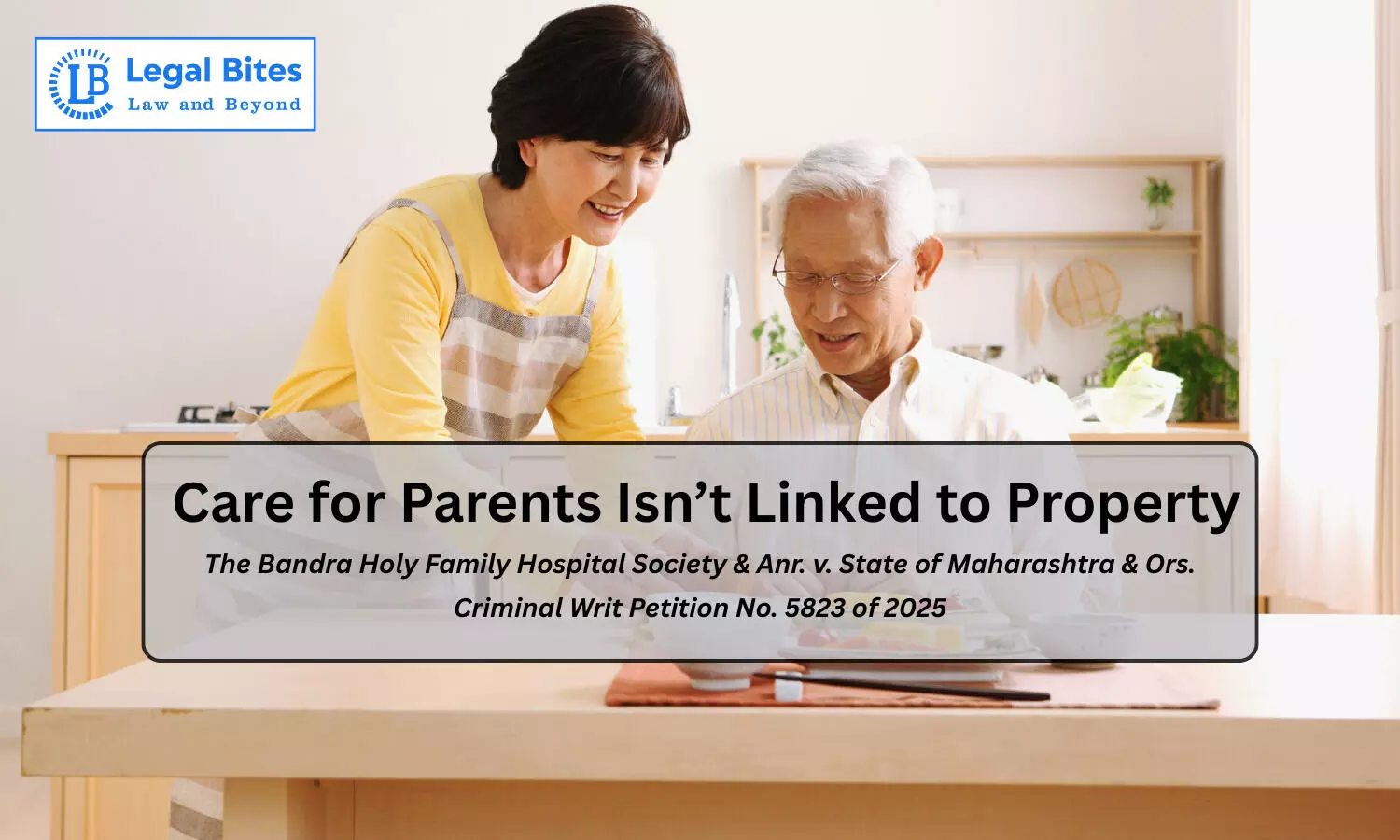 In a significant judgment (The Bandra Holy Family Hospital Society & Anr. v. State of Maharashtra & Ors.), the Bombay High Court has delivered a decisive answer: a child’s duty to maintain parents is unconditional, statutory, and not dependent on receiving or inheriting their property. The Court’s interpretation marks an important clarification under the Maintenance and Welfare of Parents and Senior Citizens Act, 2007 (“Welfare Act, 2007”).