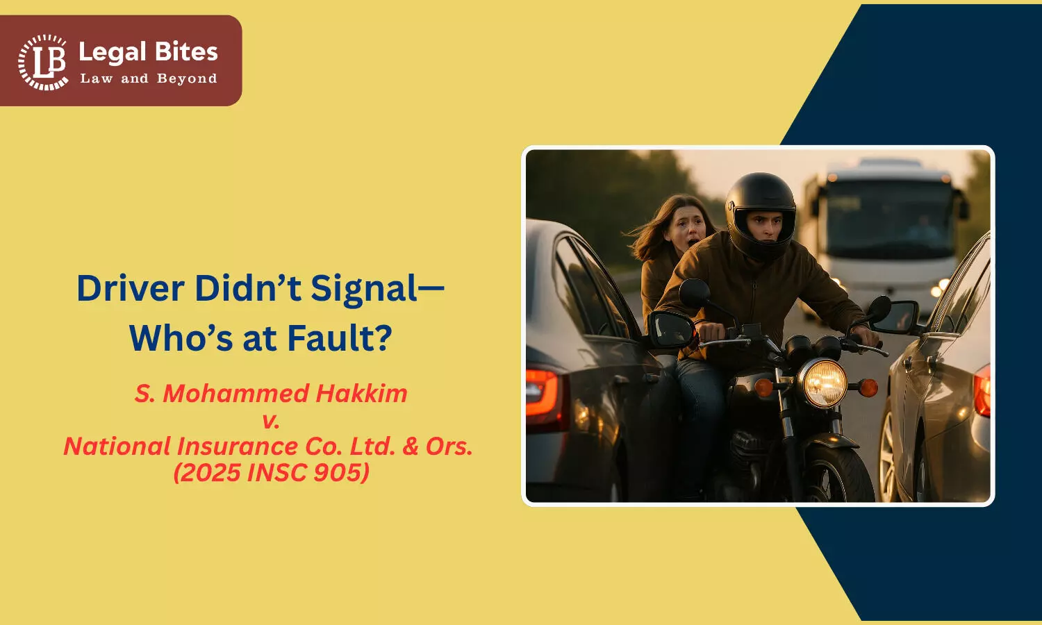 Negligence in road traffic laws hinges on a driver's failure to act as a reasonable person would under similar circumstances. One of the most contentious issues is whether failing to signal before stopping on a highway constitutes actionable negligence. The recent Supreme Court of India judgment in S. Mohammed Hakkim v. National Insurance Co. Ltd. & Ors. (2025 INSC 905) provides crucial guidance on this matter.