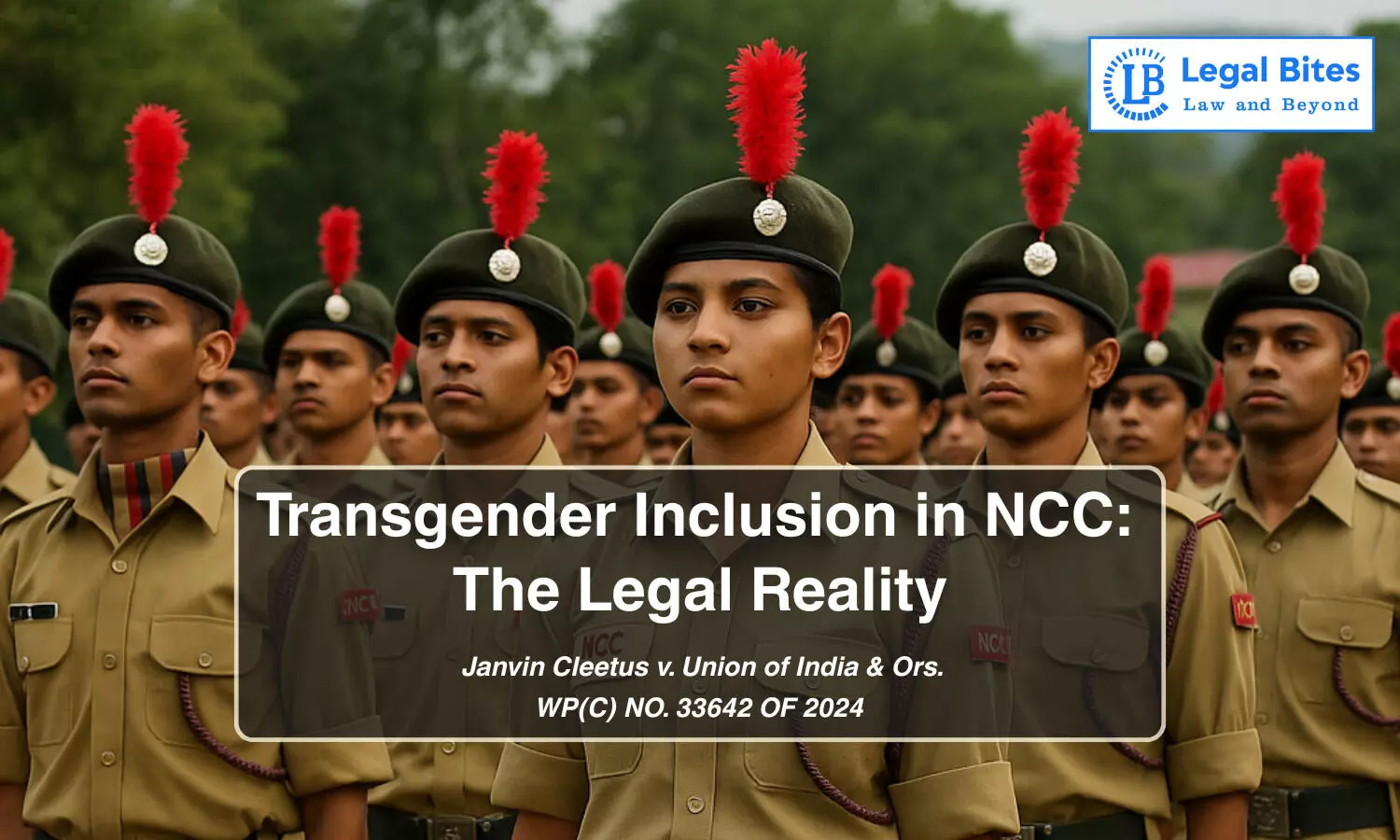 The question of whether transgender youth can enroll in the National Cadet Corps (NCC) raises fundamental issues of equality, statutory interpretation, policy formulation, and the Indian State’s obligations towards gender-diverse persons. The debate has gained national attention following the Kerala High Court’s landmark judgment in Janvin Cleetus v. Union of India & Ors. (2025), where a transgender applicant was denied NCC enrollment solely based on gender identity.The Court,...