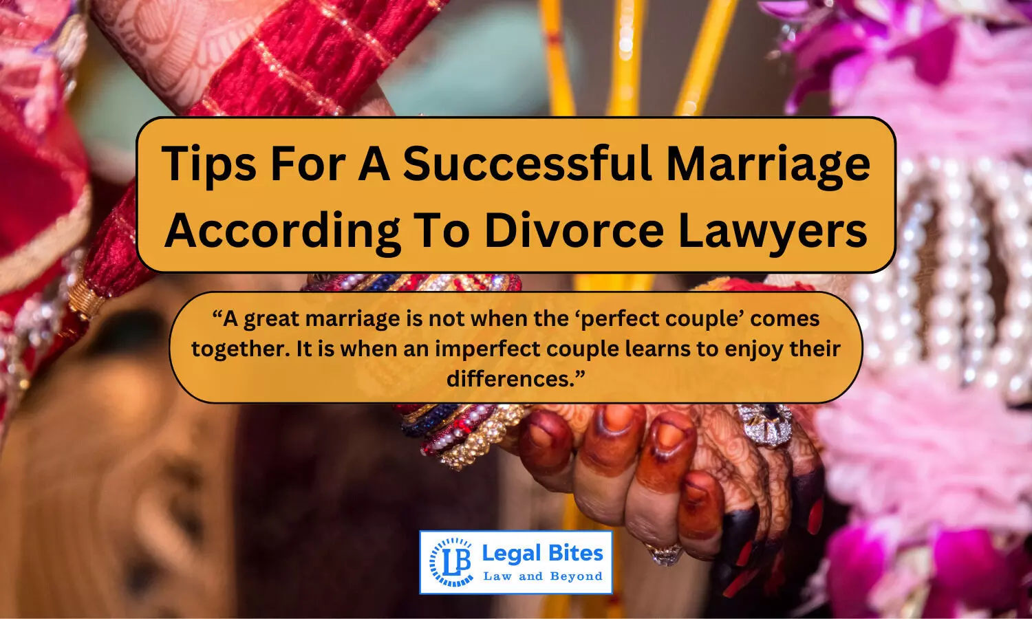The Article 'tips for a successful marriage according to divorce lawyers' by Trishita Shetty is a specific evaluation of the steps that must be followed by couples to make their pious obligation, an accomplishment.;