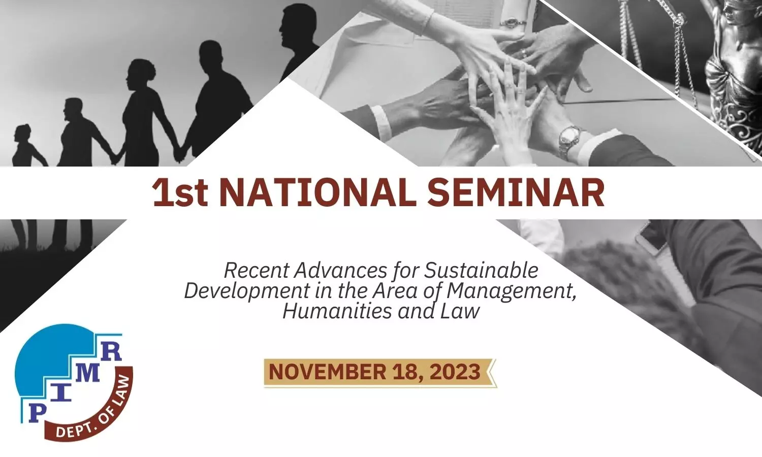 Department of Law, Prestige Institute of Management and Research, Indore is elated to announce its 1st National Seminar on "Recent Advances for Sustainable Development in the Area of Management, Humanities, and Law" scheduled to be held on 18th October 2023.