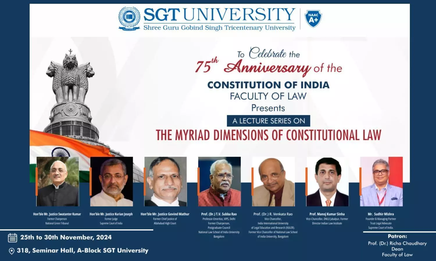 Join SGT University’s Faculty of Law for a Lecture Series on the Myriad Dimensions of Constitutional Law from November 25 to November 30, 2025.