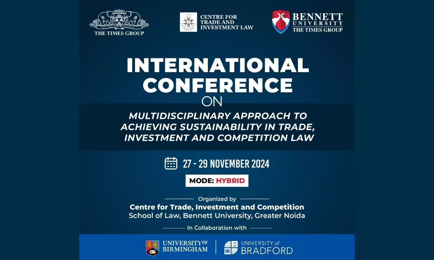 School of Law, Bennett University and the Centre for Trade, Investment and Competition (CTIC) invites research papers for the International Conference on Multidisciplinary Approach to Achieving Sustainability in Trade, Investment and Competition Law to be held on 27-29th Nov. 2024.