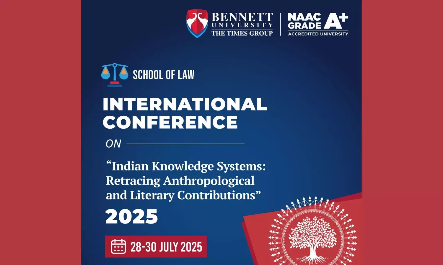 School of Law, Bennett University, is organizing the “International Conference on Indian Knowledge Systems: Retracing Anthropological and Literary Contributions (2025),” which is scheduled to be held from 28th to 30th July 2025 in Greater Noida.