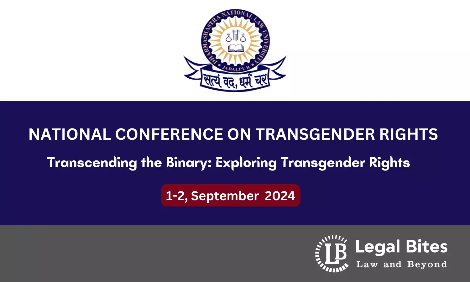 The Centre for Constitutional Law at Dharmashastra National Law University (DNLU) is organizing a national conference titled "Transcending the Binary: Exploring Transgender Rights" on September 1-2, 2024. This event will be held in hybrid mode at DNLU Campus.