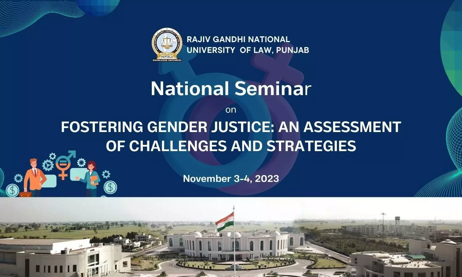 Rajiv Gandhi National University of Law, Punjab is organising the National Seminar on Fostering Gender Justice: An Assessment of Challenges and Strategies on November 3-4, 2023.;