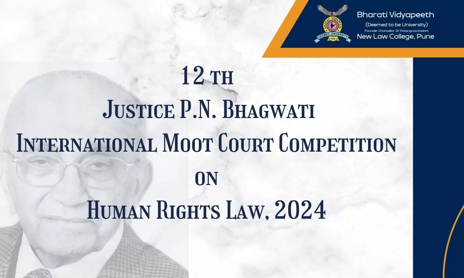 Bharati Vidyapeeth (Deemed to be University), New Law College, Pune’s Moot Court Society is delighted to announce the forthcoming 12th Justice P.N. Bhagwati International Moot Court Competition on Human Rights Law, scheduled from 21st - 23rd March 2024.