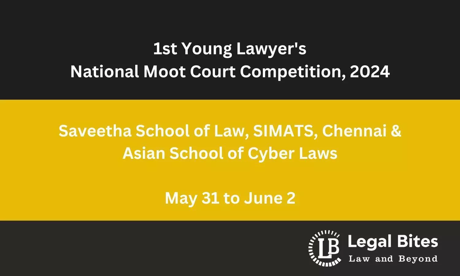 Saveetha School of Law, SIMATS, Chennai & Asian School of Cyber Laws is organising the 1st Young Lawyer's National Moot Court Competition, 2024 from 31st May to 2nd June.