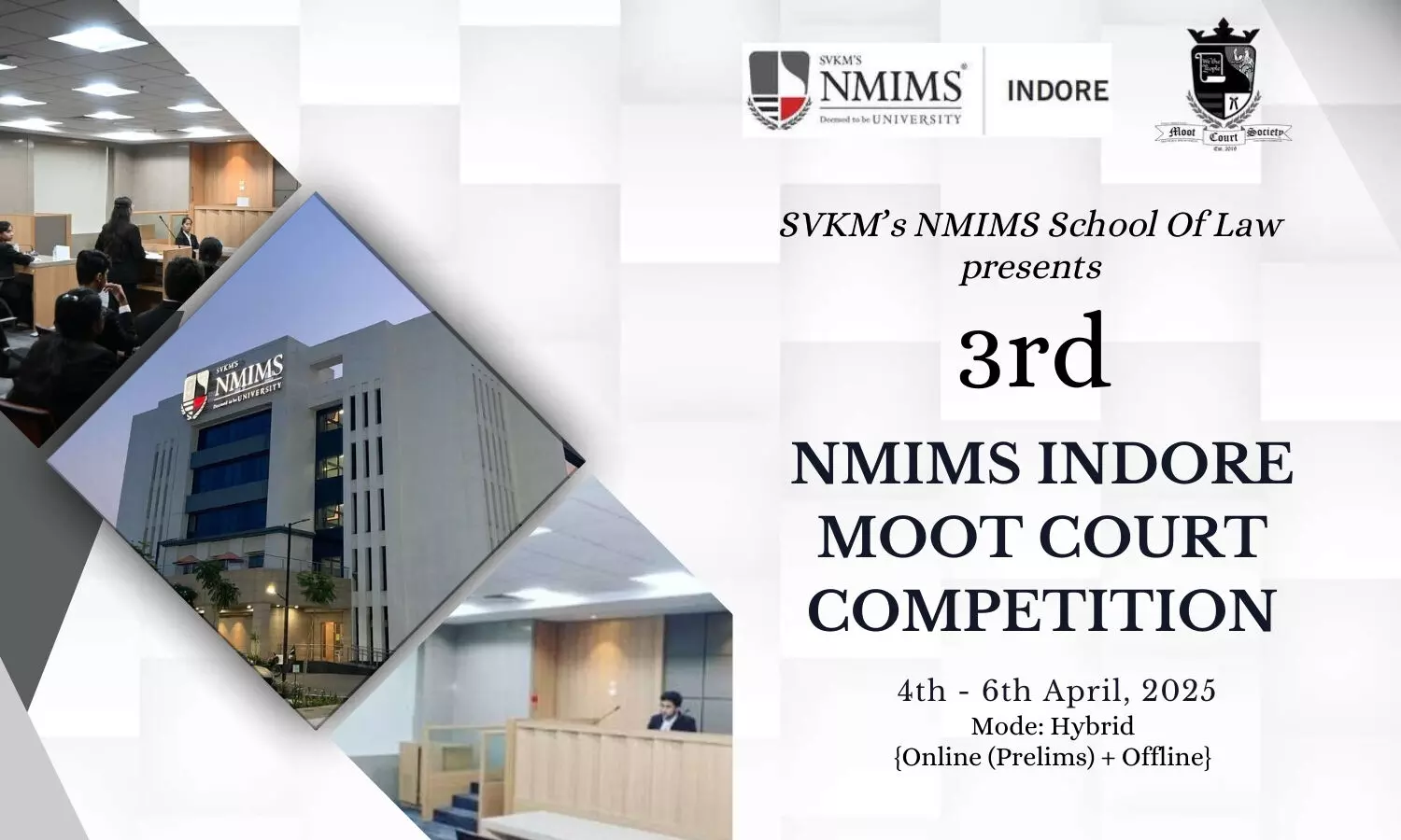 School of Law, NMIMS Indore is organising the 3rd NMIMS Indore Moot Court Competition 2025. Scroll down for more information!;