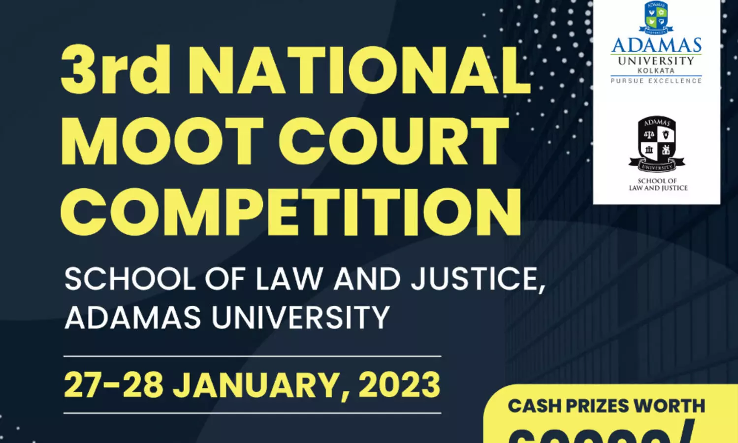 3rd SOLJ National Moot Court Competition is being organised by School of Law and Justice, Adamas University from 27th - 28th January 2023.
