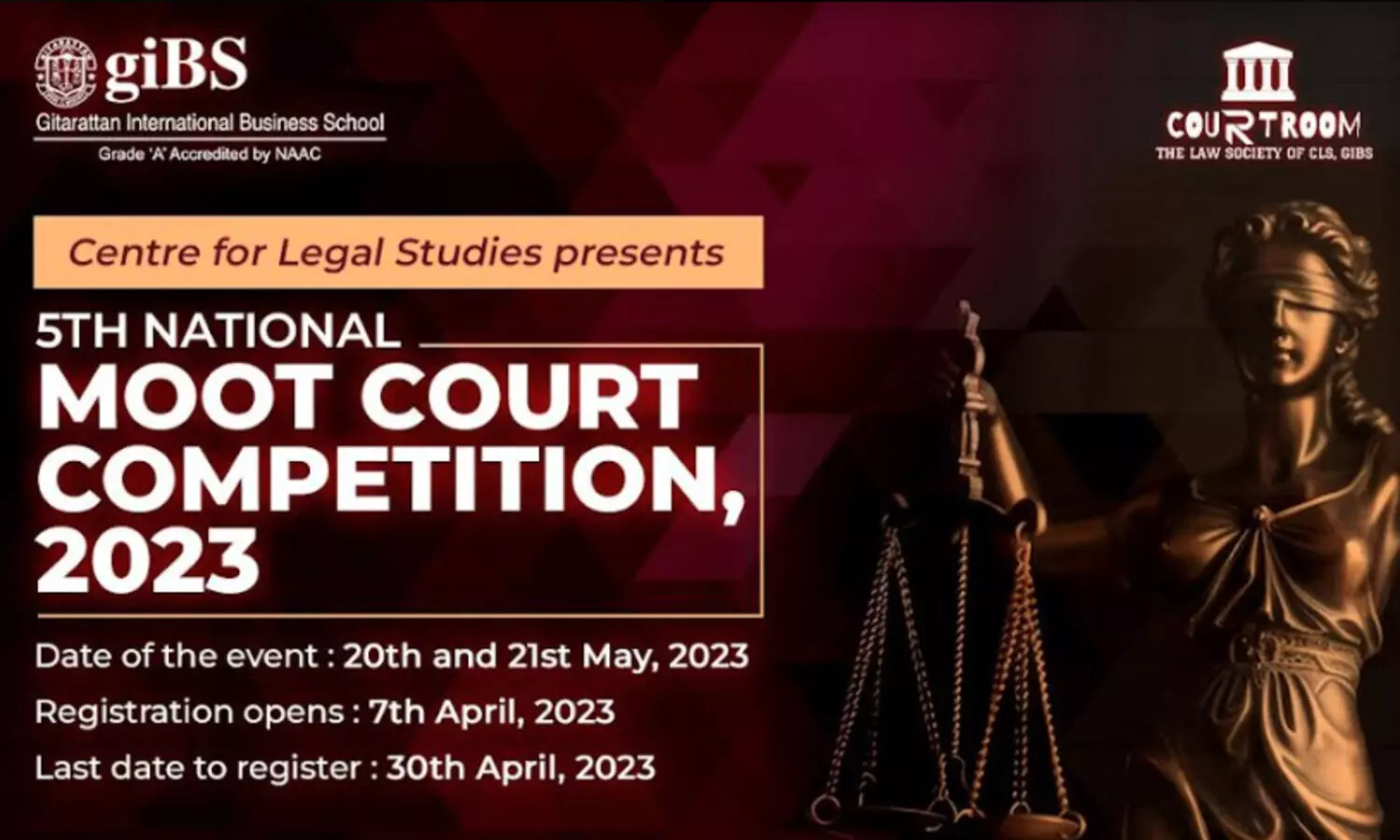 Courtroom - The Law Society, Centre for Legal Studies, Gitarattan International Business School is organizing the 5th National Moot Court Competition, 2023.