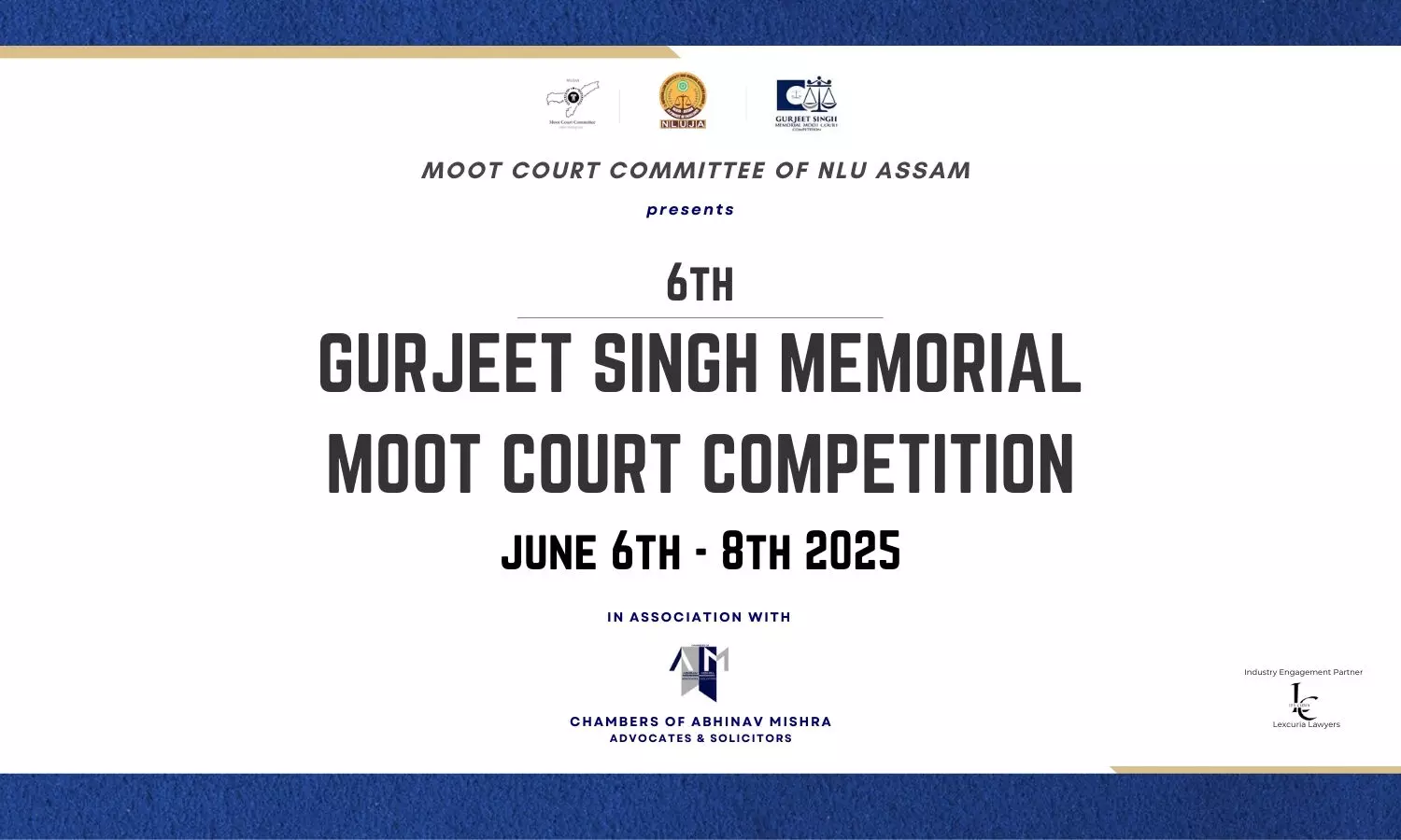 National Law University and Judicial Academy, Assam is organising the 6th Gurjeet Singh Memorial National Moot Court Competition 2025. Scroll down for more details!;