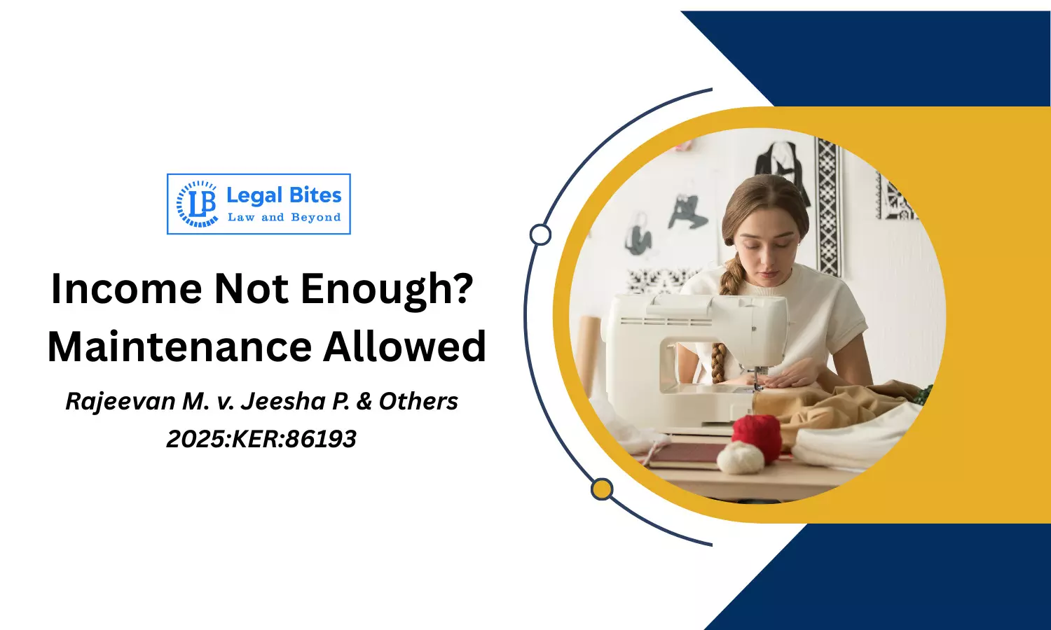 Kerala High Court has reaffirmed the principle that a woman’s independent income does not automatically disqualify her from seeking maintenance from her husband if such income is insufficient for a dignified living. In RPFC Nos. 476 & 409 of 2017, the High Court set aside the Family Court’s decision denying maintenance to the wife and awarded her ₹8,000 per month, while maintaining ₹6,000 per month for each child, as originally ordered by the Family Court.