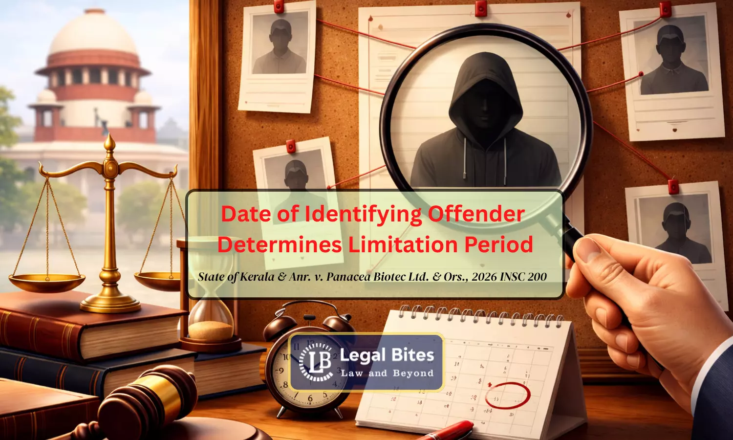 In State of Kerala & Anr. v. Panacea Biotec Ltd. & Ors., the Supreme Court clarified an important principle: the limitation period is linked to the identification of the offender and not merely to the filing of the initial complaint or knowledge of the offence. The Court interpreted Sections 468, 469, and 473 of the Code of Criminal Procedure (CrPC) (now, Sections 514, 515, 519 of BNSS). It held that the limitation period begins on the date the offender's identity becomes known, when that identity was initially unknown.