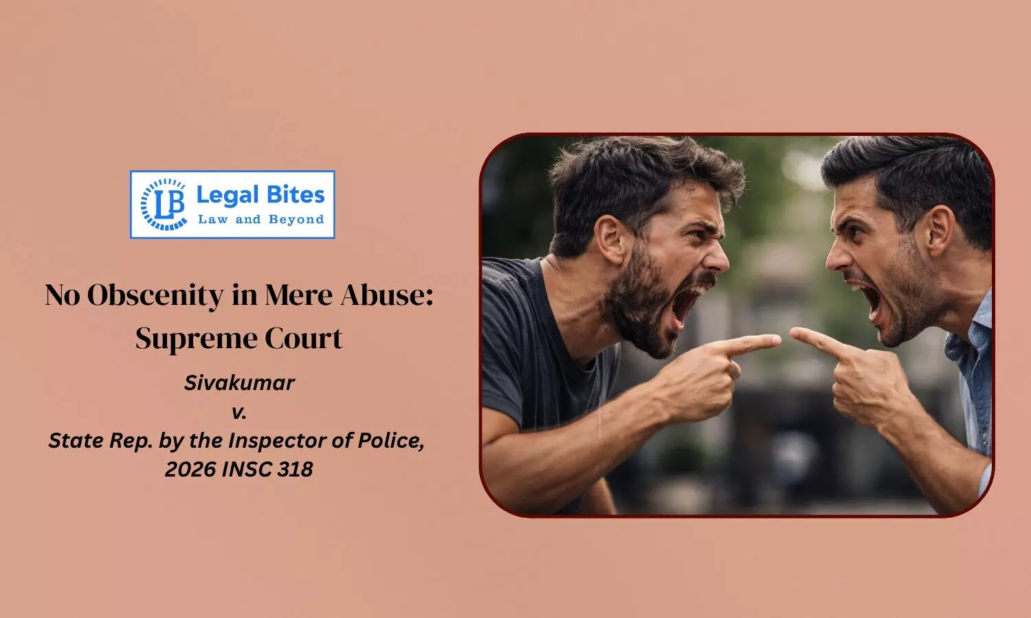 In criminal jurisprudence, the distinction between abusive language and obscenity has often generated confusion. While the law penalises obscene acts and expressions under the Indian Penal Code (now Bharatiya Nyaya Sanhita), not every offensive or insulting word attracts criminal liability. The Supreme Court of India recently clarified this important distinction in Sivakumar v. State Rep. by the Inspector of Police (2026), holding that the mere use of abusive expressions such as “bastard” does not automatically constitute an offence of obscenity under Section 294 of the IPC (Section 296 BNS).