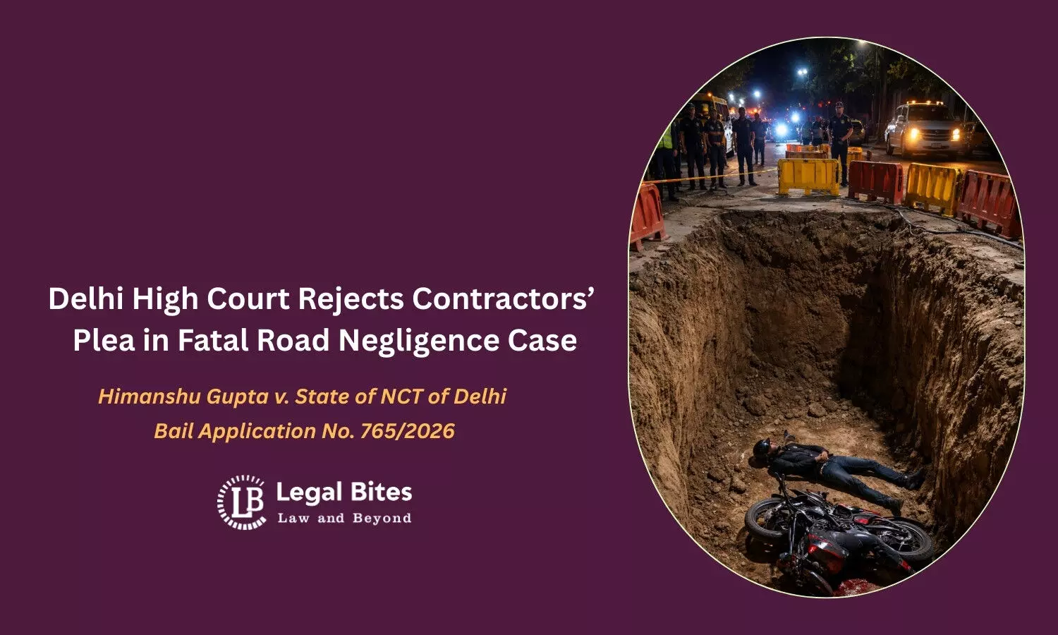 Contractors denied bail in biker death case as Delhi High Court holds safety obligations in road works cannot be ignored.