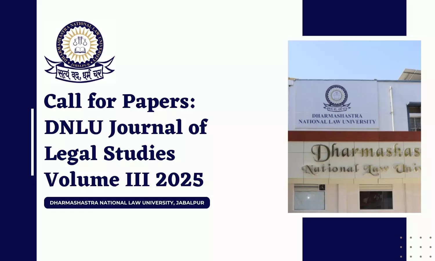 Dharmashastra National Law University – Journal of Legal Studies (DNLU–JLS) (ISSN: 3048-958X) is inviting scholarly submissions for its upcoming issue. DNLU–JLS is the flagship, faculty-run, double-blind peer-reviewed law journal of the University. It seeks to provide a unique platform for academicians, researchers, professionals, and students interested in legal studies to present their research and insights.