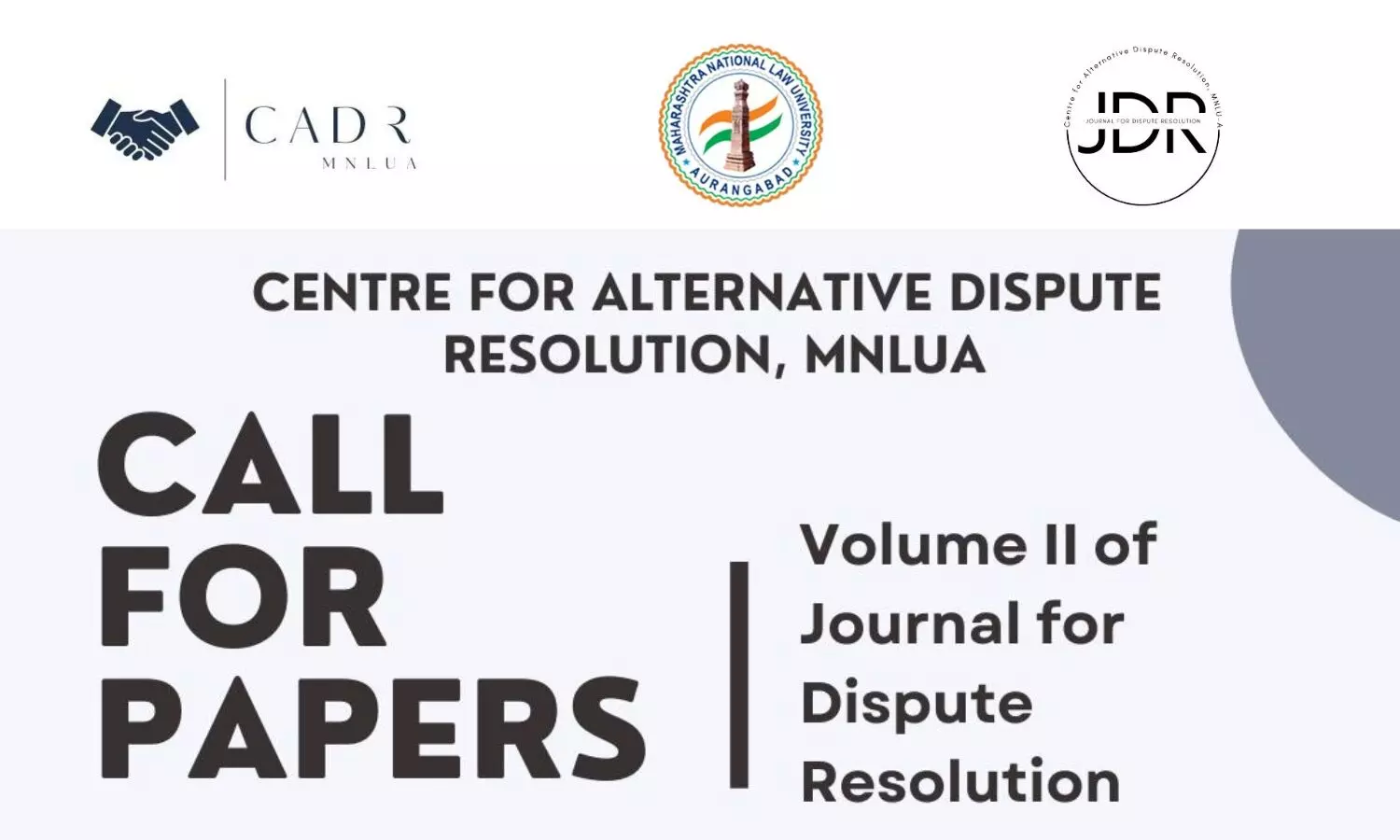 Call for Papers: Journal for Dispute Resolution Volume II | CADR, MNLU-A