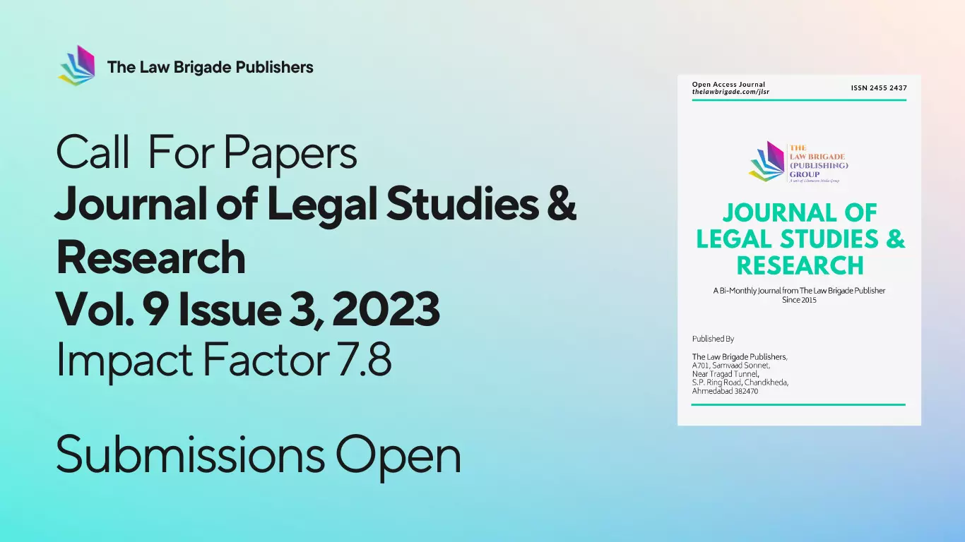 Call for Papers | Journal of Legal Studies and Research Volume 9 Issue 3 | Submit by June 30, 2023