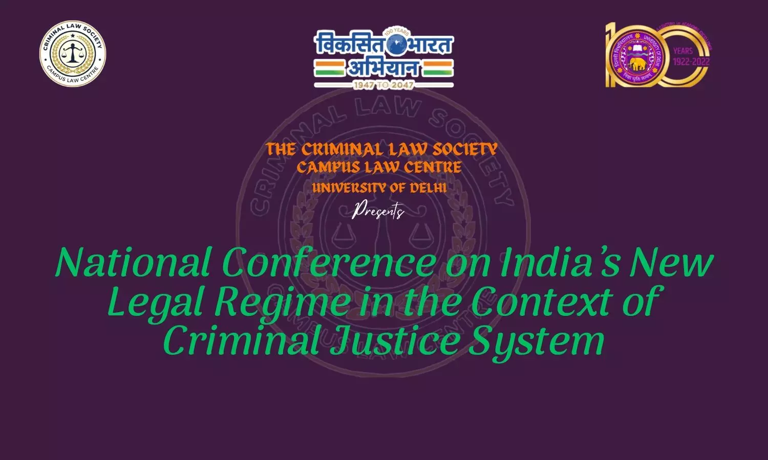 Criminal Law Society, Campus Law Centre, University of Delhi, is inviting submissions for its upcoming National Conference on India’s New Legal Regime in the Context of Criminal Justice System.