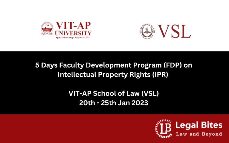 Five Days Faculty Development Program (FDP) on Intellectual Property Rights (IPR) | VIT-AP School of Law (VSL) | 20th - 25th Jan 2023