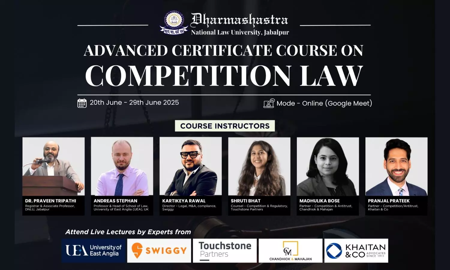 Advanced Certificate Course on Competition Law | DNLU Jabalpur [Online, 20th June - 29th June 2025]