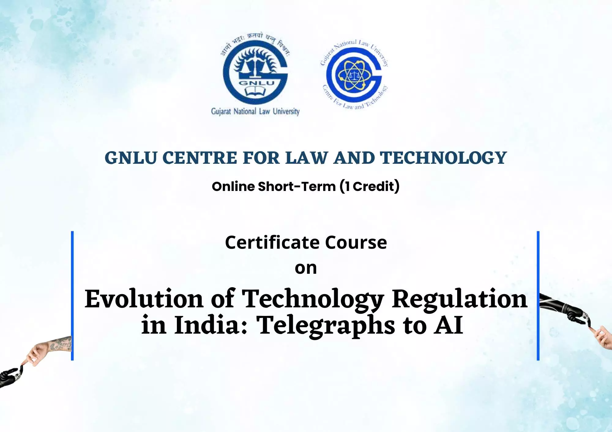 GNLU Centre for Law and Technology is organising an Online Certificate Course on "Evolution of Technology Regulation in India. Scroll down for more details!