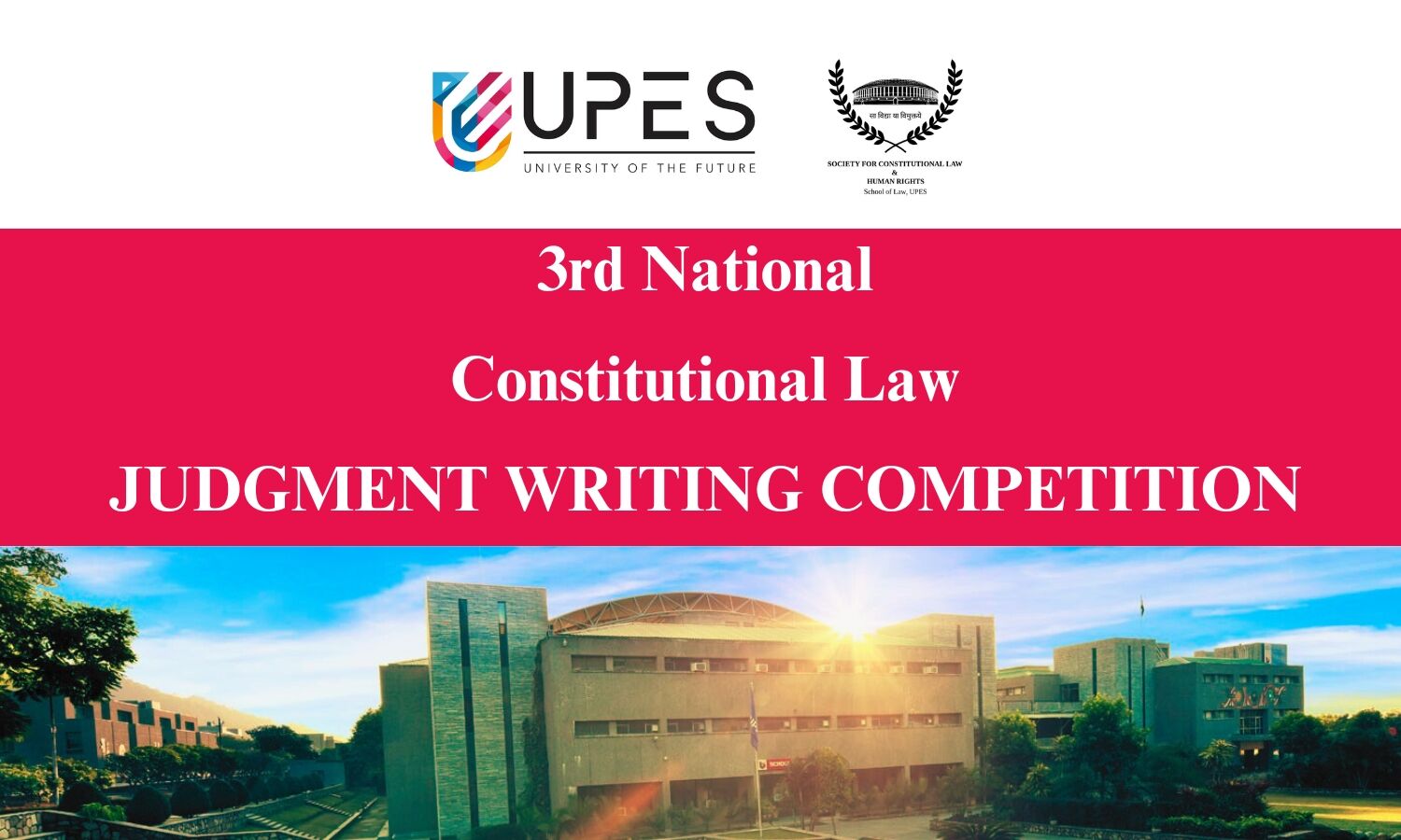 Society of Constitutional Law & Human Rights, School of Law, UPES is organising 3rd National Constitutional Law Judgment Writing Competition.