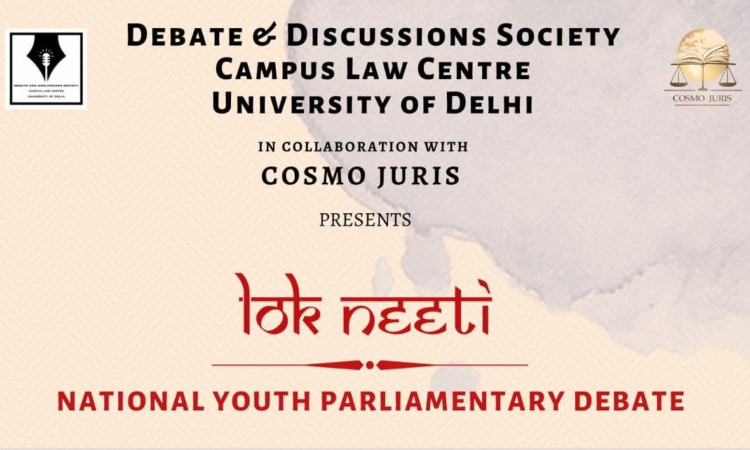 Debate & Discussions Society (DDS), Campus Law Centre in association with Cosmo Juris is organising National Youth Parliamentary Debate Lok Neeti 2023.