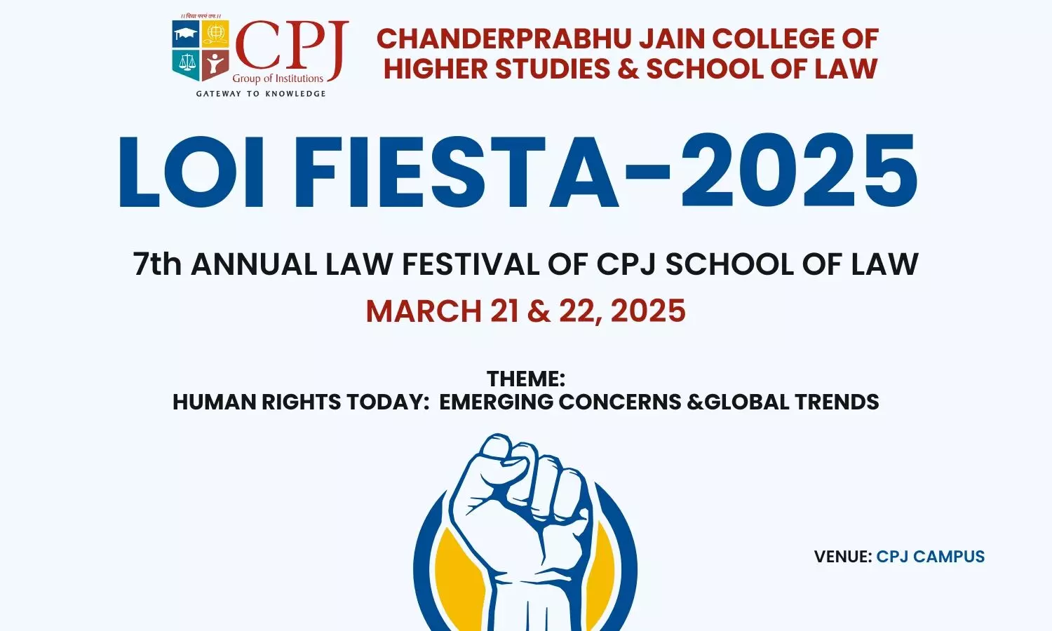 Loifiesta is the annual law festival of CPJCHS & SOL, carrying on this glorious tradition further, we are organizing our 7 Annual Law Festival “LOI FIESTA-2025″ at the College Campus on March 21 & 22, 2025 on the theme “Human Rights Today: Emerging Concerns & Global Trends.”