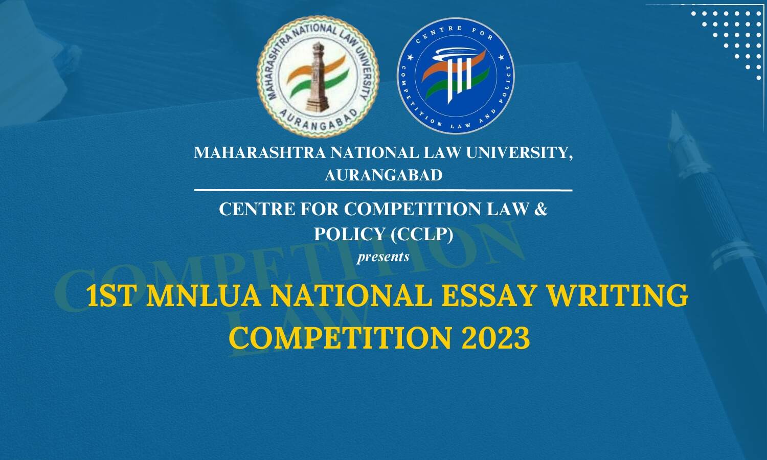 Center for Competition Law and Policy, MNLU Aurangabad is proud to announce the 1st Edition of MNLU-A National Essay Writing Competition, 2023 and invites participation from Five-Year and Three Year LL.B. Courses and LL.M Students.