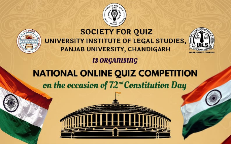 The Society for Quiz, University Institute of Legal Studies, Panjab University, Chandigarh is organizing Constitution Day National Online Quiz on November 26, 2021 (Round-1) and November 28, 2021 (Round-2).