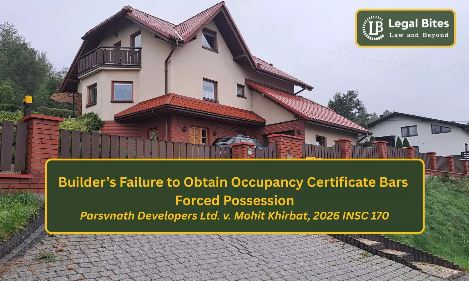 The Supreme Court of India in Parsvnath Developers Ltd. v. Mohit Khirbat (2026), delivered a landmark ruling that conclusively settled a recurring issue in Indian real estate disputes. The Court held that a builder cannot compel a homebuyer to take possession of a flat without first obtaining a valid Occupancy Certificate.