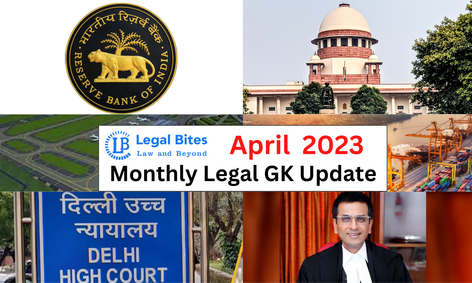 Here are Legal Bites April 2023 monthly GK updates. The notable happenings of the month were decisions related to the Supreme Court, World Bank, RBI, Delhi High Court, Adani Port, Sabarimala Greenfield Airport project, etc.