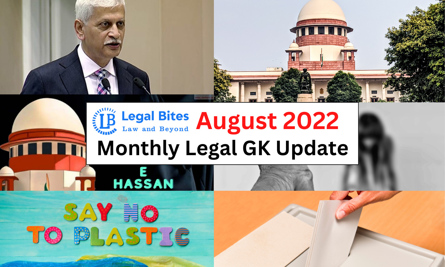 Here are Legal Bites August 2022 monthly GK updates. The notable happenings of the months were related to the appointment of Justice UU Lalit as CJI, maritime mission 'Nari Shakti', Central University (Amendment) Bill 2022, the apex court's decision on Talaq-e-Hasan, and so on. We have covered all the happenings in the gist so that it helps the readers to remember all legal and current updates about August 2022 most efficiently and easily.