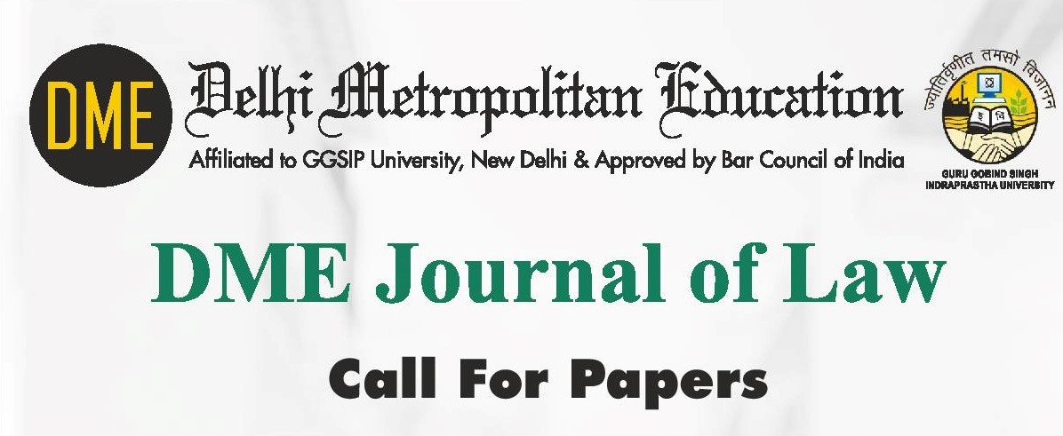 Research Cell, Delhi Metropolitan Education is releasing the DME Journal of Law (DMEJL) and seeks to invite papers for DMEJL Volume 1, 2020.