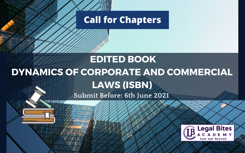 Editors are looking for high-quality contributions in the form of Book Chapters for an Edited book on “Dynamics of Corporate and Commercial Laws (ISBN)” from research scholars, academicians and professionals from the legal field and inter-disciplinary streams. The Chapters must address the key issues pertaining to Corporate and Commercial Laws.