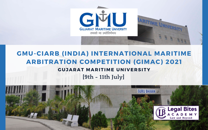 Gujarat Maritime University is organising GMU-CIArb (India) International Maritime Arbitration Competition (GIMAC 2021) from July 09th – July 11th 2021. The last date of registration is June 22.