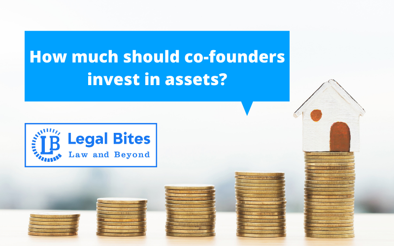 Secondly, dealing with exactly how much should be invested in assets, while we have already discussed the fact that there is no specific number and that it depends on the company and the kind of assets required, the amount that should be invested by the co-founders should be enough to get the business running but not so much that if it does not take off quickly and the business is in a loss, that there will be a huge amount of money lost.