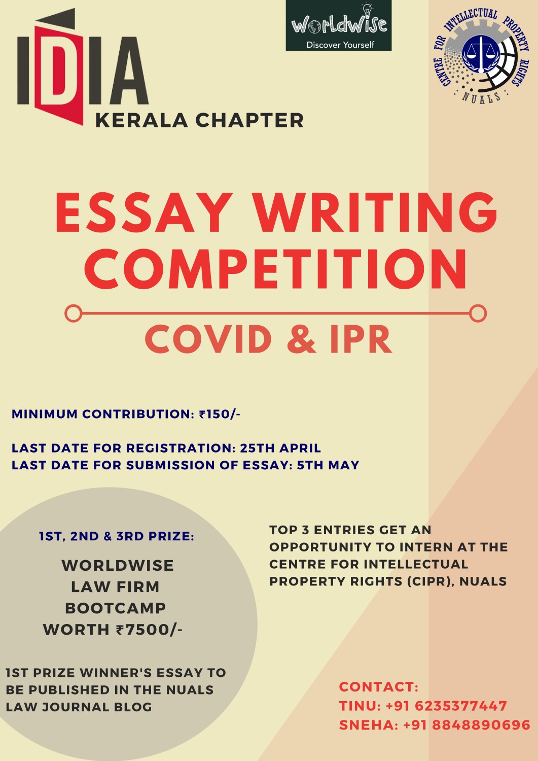 The IDIA Kerala Chapter is hosting an essay writing competition on COVID-19 and IPR. The competition is open to students pursuing under-graduation from any recognised University in India.