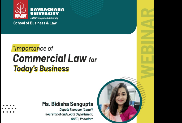 School of Business & Law, Navrachana University is organising a webinar on Importance of Commercial Law For Today’s Business.