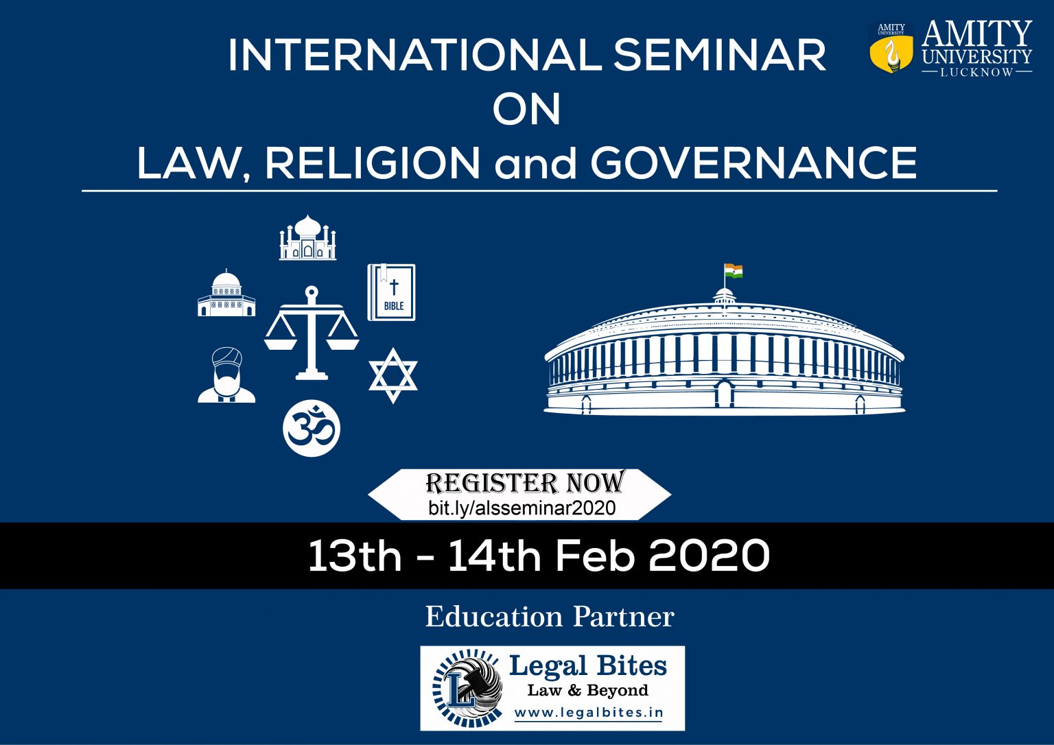 Amity University, Lucknow Campus is organising a two-day International Seminar On Law, Religion & Governance: Issues & Challenges 2020 on 13th February-14th February 2020.