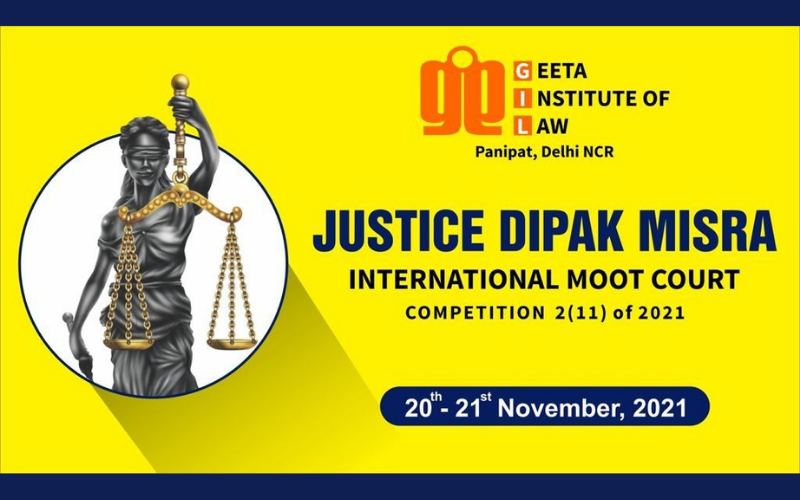 Justice Dipak Misra International Moot Court Competition 2(11) of 2021 dates has been announced by Geeta Institute of Law. The competition will be conducted virtually on 20th and 21st November 2021.