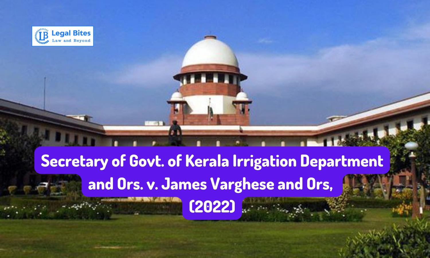 The 'Case Summary: 'Secretary of Govt. of Kerala Irrigation Department and Ors. v. James Varghese and Ors' by Snehil Sharma contains one of the landmark judgments passed by the Hon'ble Supreme Court of India.