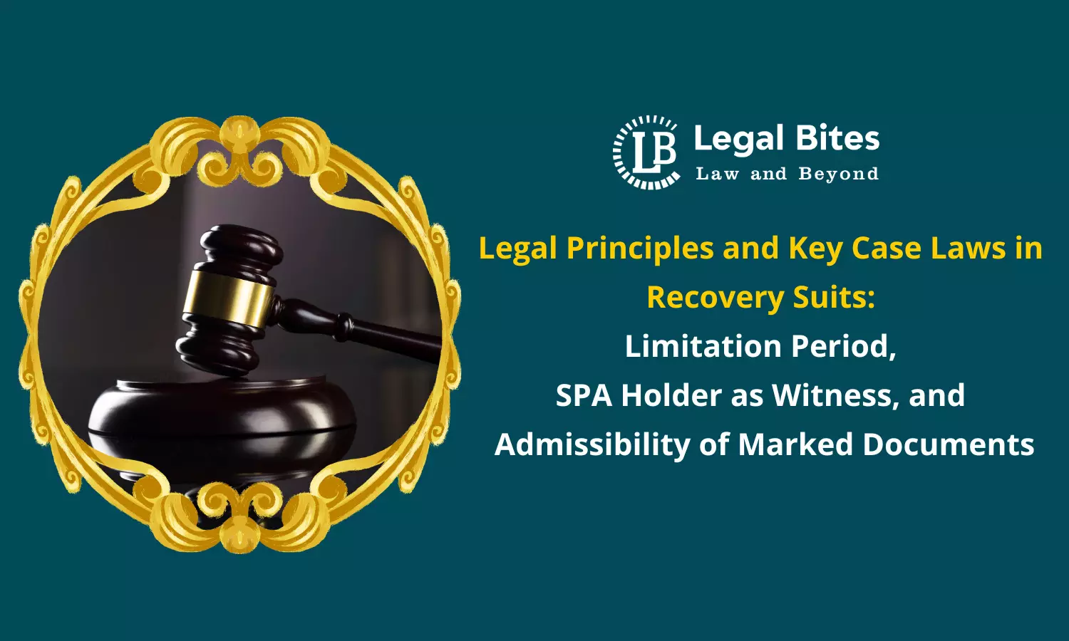 Legal Principles and Key Case Laws in Recovery Suits: Limitation Period, SPA Holder as Witness, and Admissibility of Marked Documents